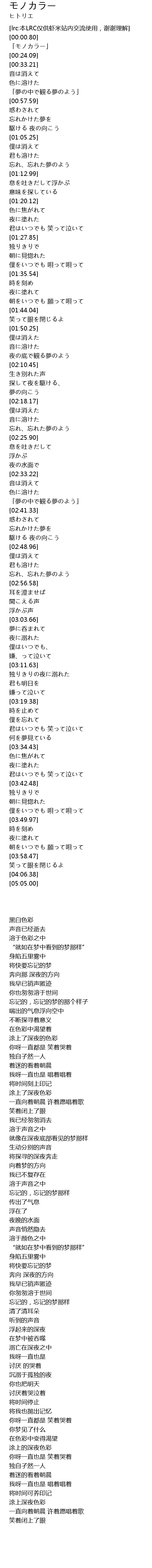 | [00:19.38] | 「モノカラー」 |