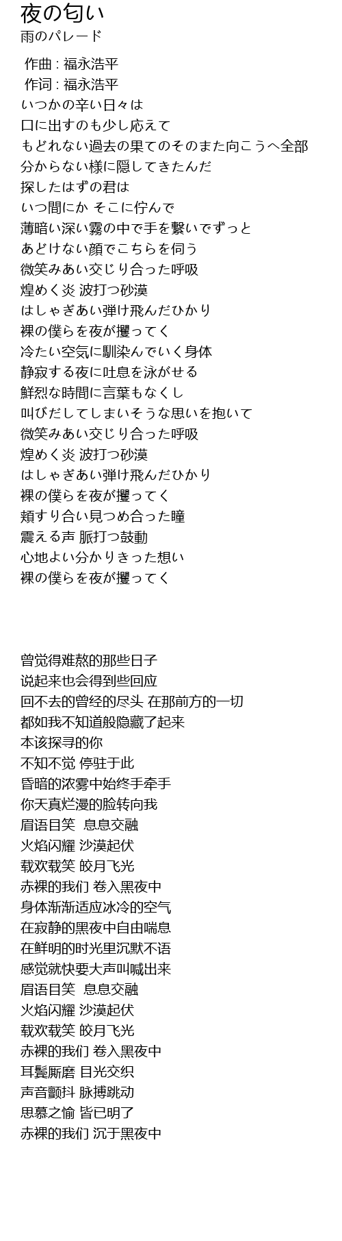 | [02:05.20] | 裸の僕らを夜が攫ってく |