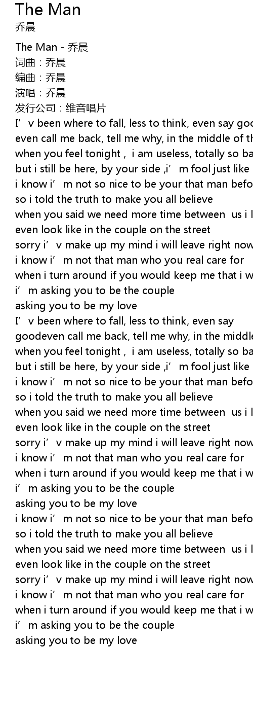 | [00:02.420] | The Man - 乔晨 |