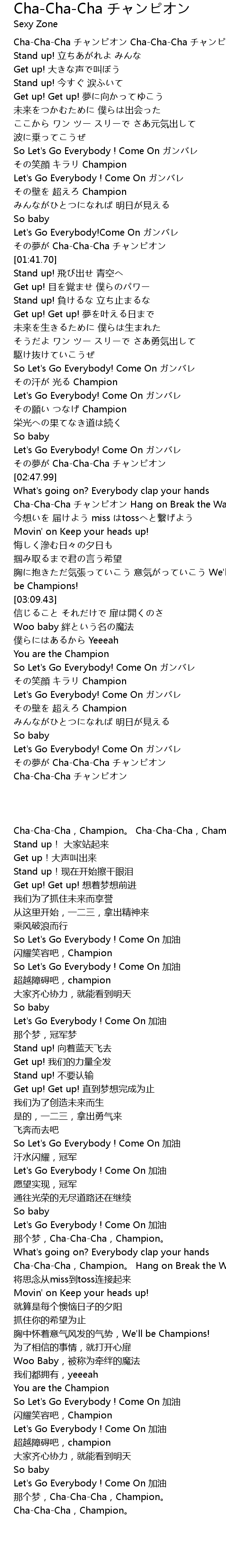 | [02:50.54] | ChaChaCha Hang on Break the Wall |