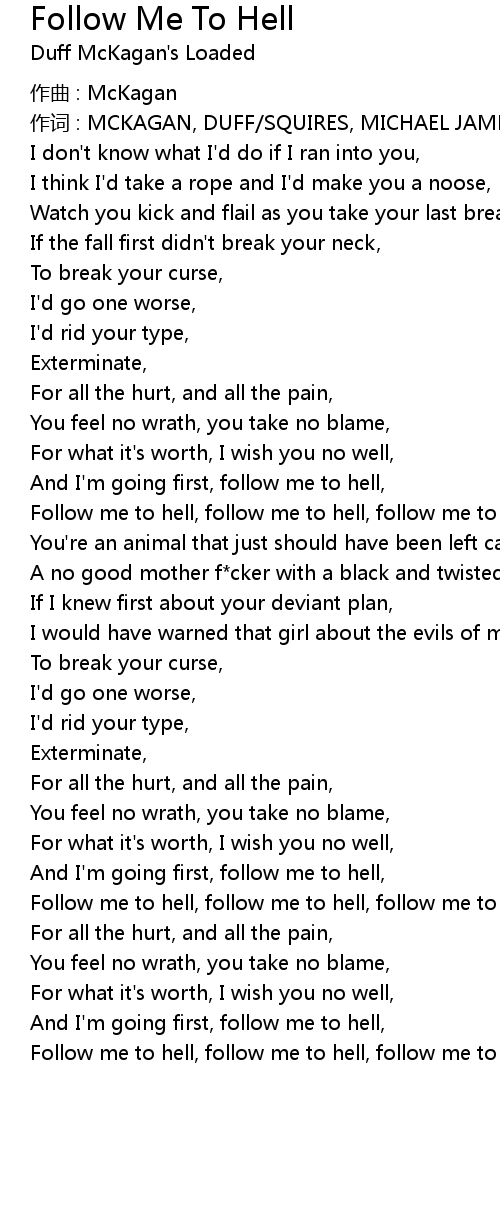 | Follow me to hell, follow me to hell, follow me to hell |