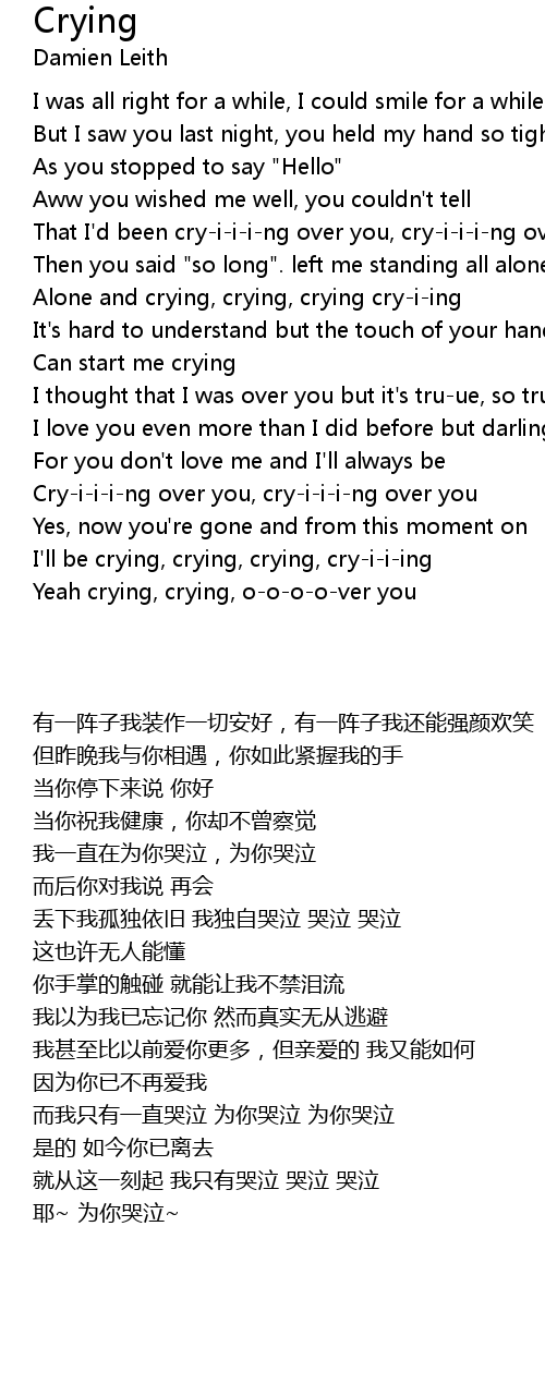Alone and crying, crying, crying cry-i-ing |
