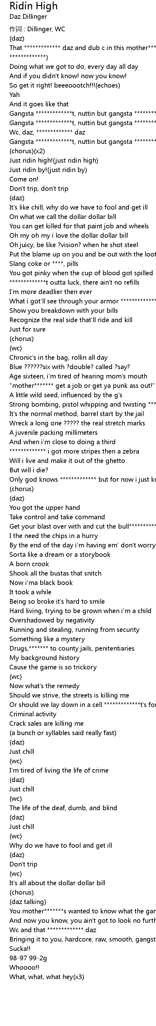 | 作词 : Dillinger, WC | |