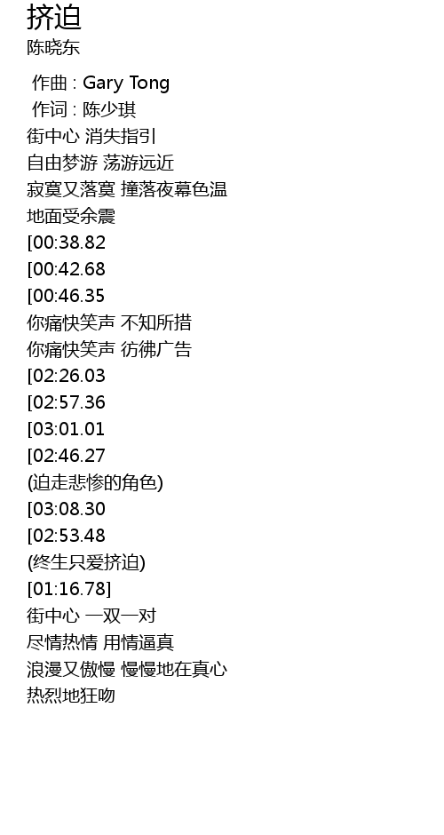 | [03:37.79] | (终生只爱挤迫) |