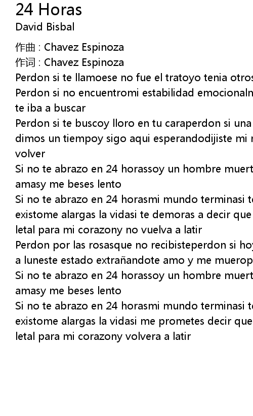 | Si no te abrazo en 24 horasmi mundo terminasi te retractas a olvidar que existome alargas la vidasi te demoras a decir que sivas a volver junto a misera letal para mi corazony no vuelva a latir | |