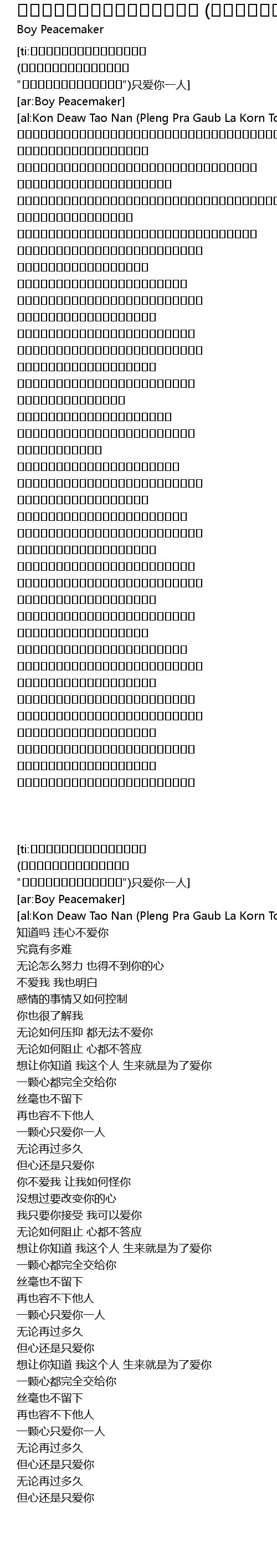 | [ti:คนเดียวเท่านั้น (เพลงประกอบละคร "ต้นรักริมรั้ว")只爱你一人] | |
