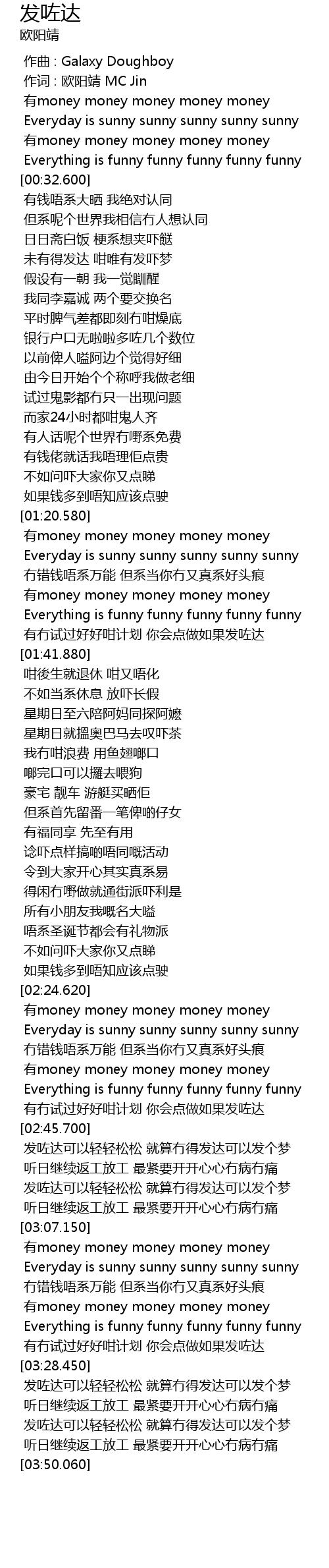 | [03:39.270] | 发咗达可以轻轻松松 就算冇得发达可以发个梦 |