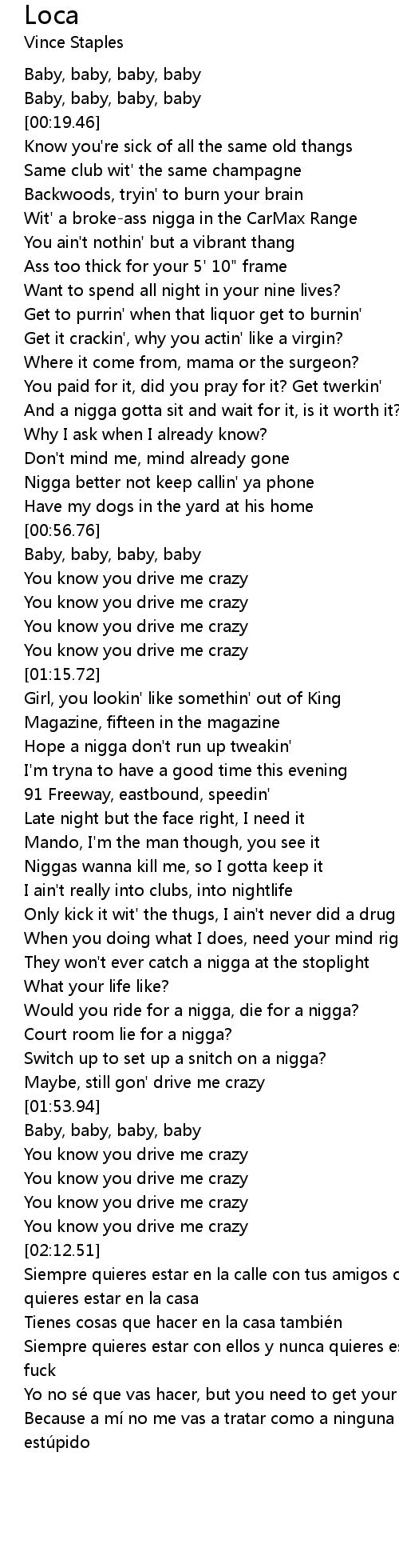 | [02:03.21] | You know you drive me crazy |