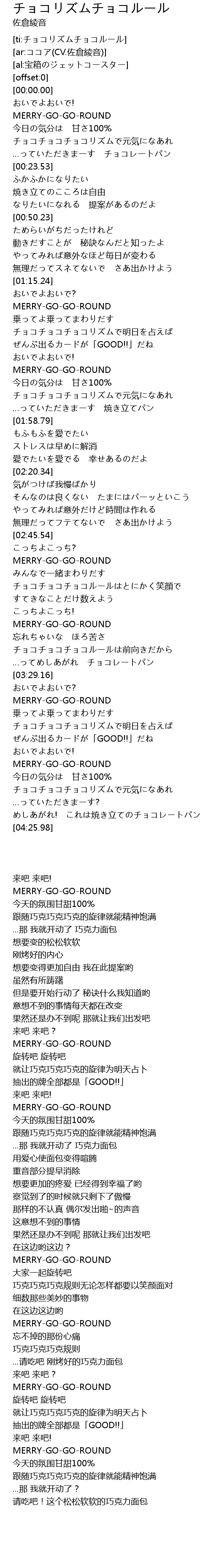 | [04:10.22] | チョコチョコチョコリズムで元気になあれ |