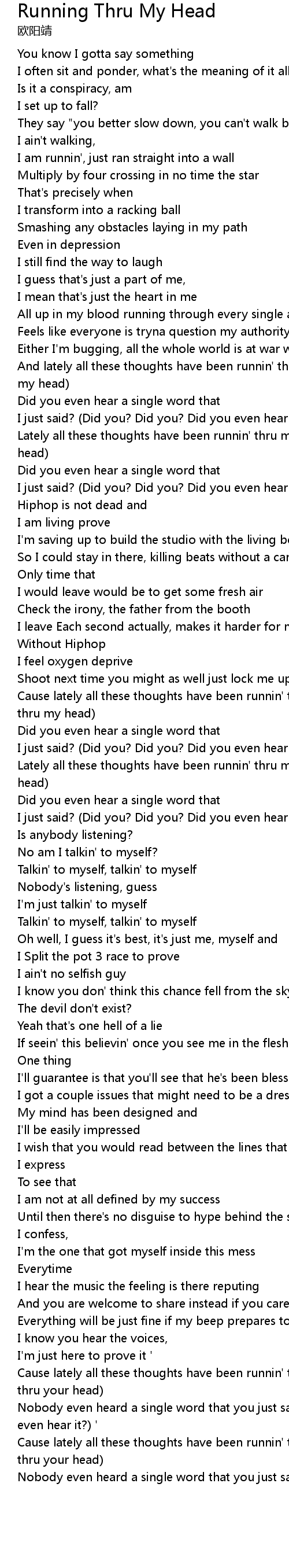Cause lately all these thoughts have been runnin' thru my head (Ru-ru-runnin' thru my head) |
