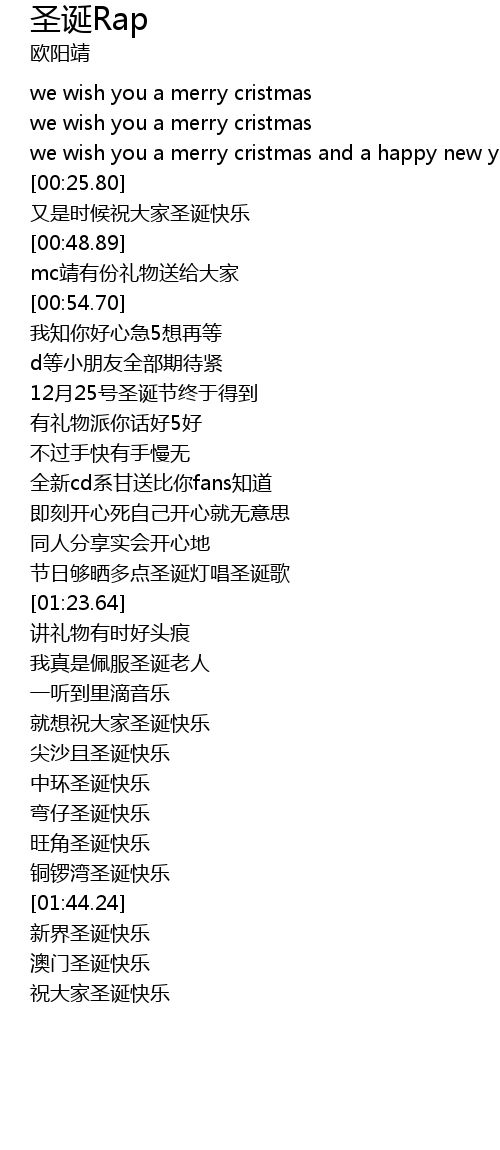 | [01:44.80] | 新界圣诞快乐 |