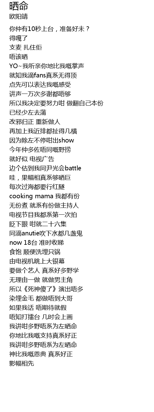 | [01:39] | wǒ jiǎng hán duō yě wú xì wèi zuǒ shài mìng |