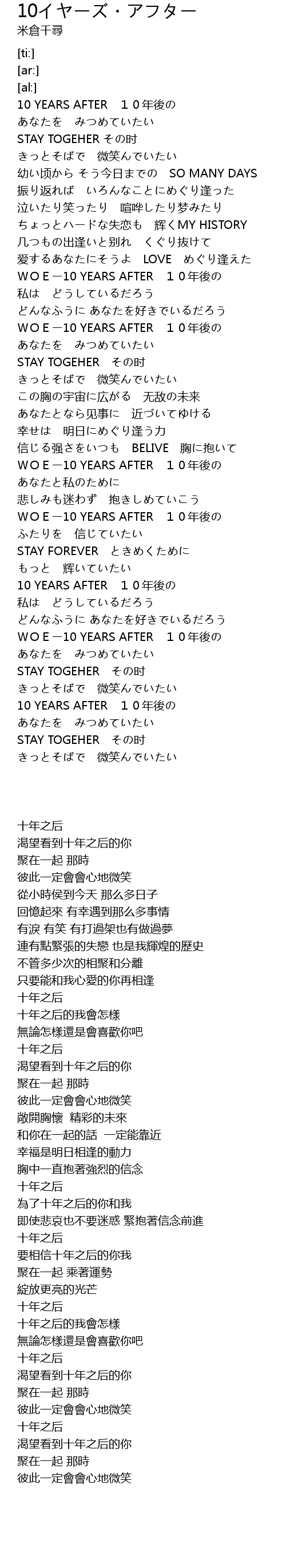 | [03:22.69] | 10 YEARS AFTER nián hòu |