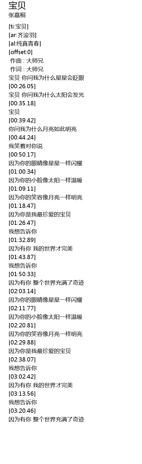| [02:32.99] | 因为你是我最珍爱的宝贝 |