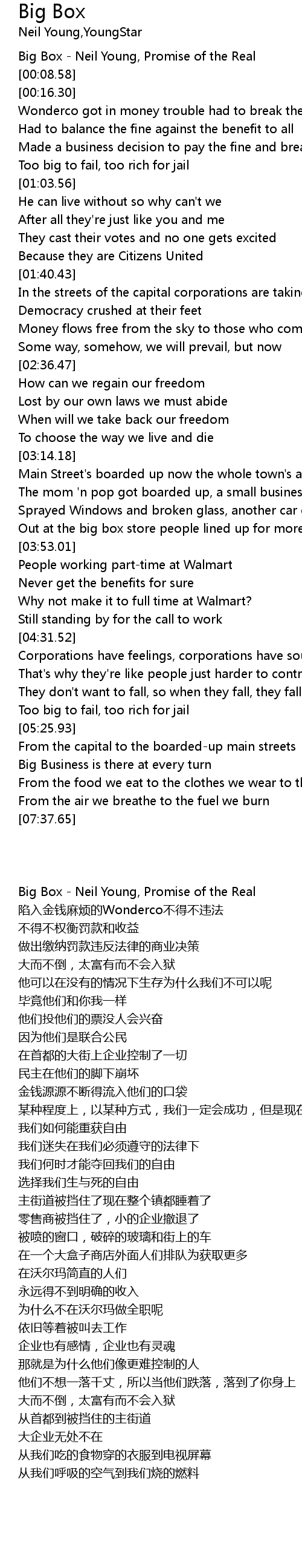 Big Box - Neil Young, Promise of the Real |
