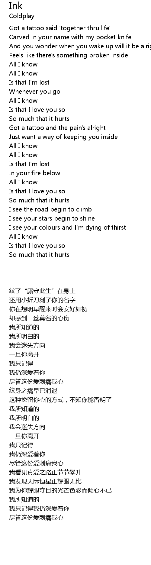 Got a tattoo and the pain's alright |