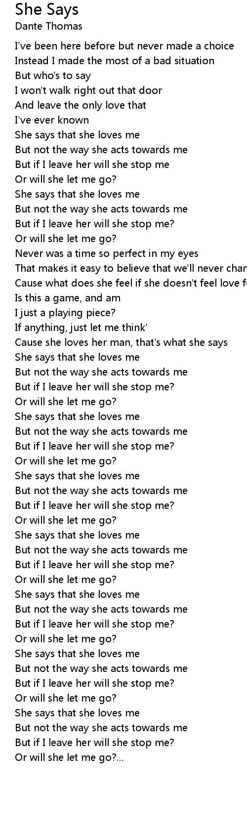 Cause she loves her man, that's what she says |