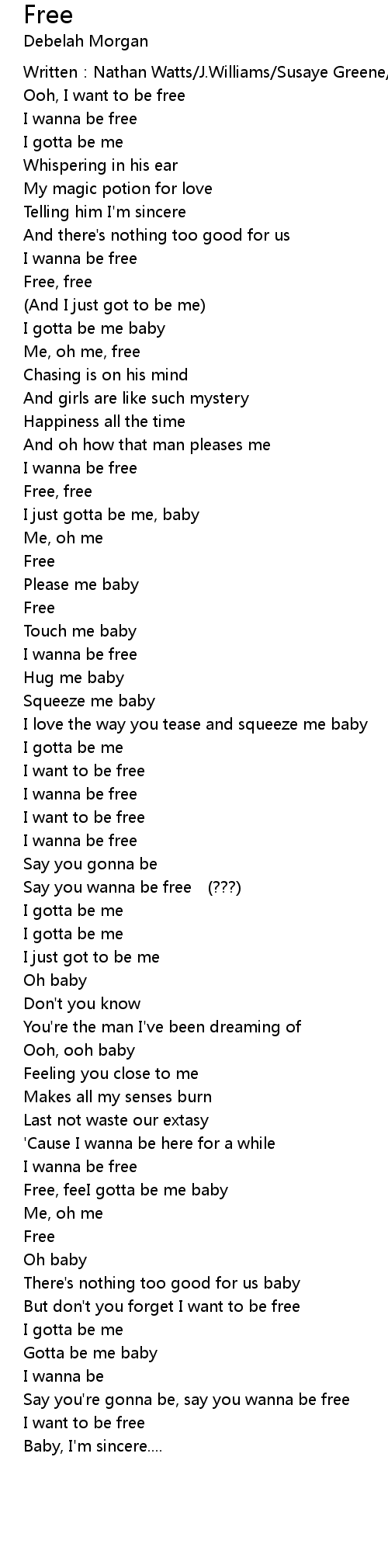 | Free, feeI gotta be me baby | |