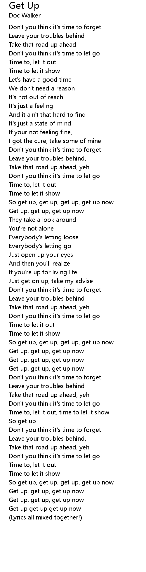 So get up, get up, get up, get up now |