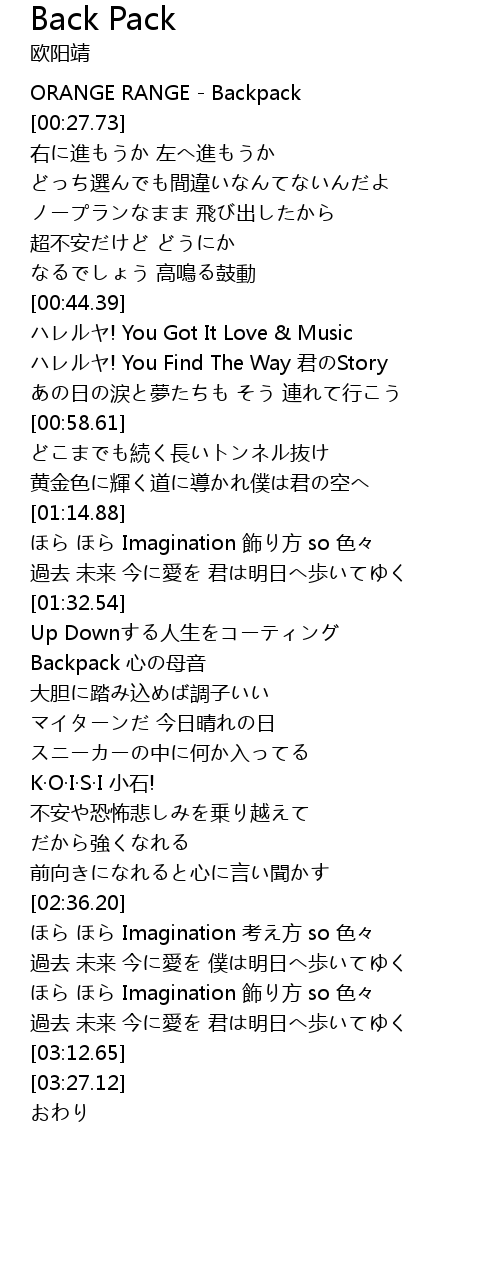 | [00:00.00] | ORANGE RANGE - Backpack |