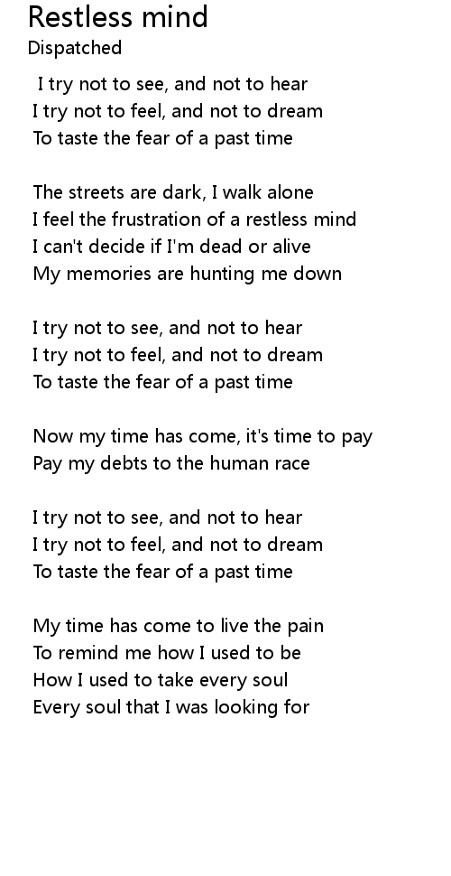 I feel the frustration of a restless mind |