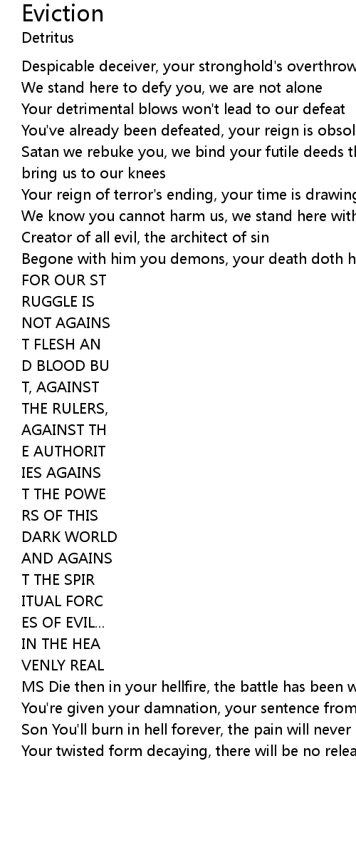 Satan we rebuke you, we bind your futile deeds the misery you've sent us won't bring us to our knees |