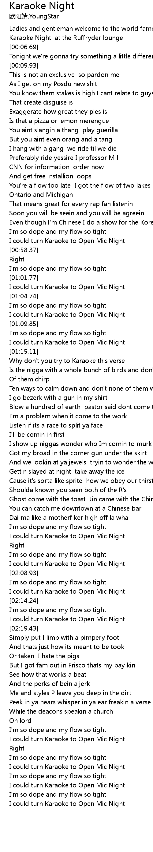 | [00:54.32] | I'm so dope and my flow so tight |