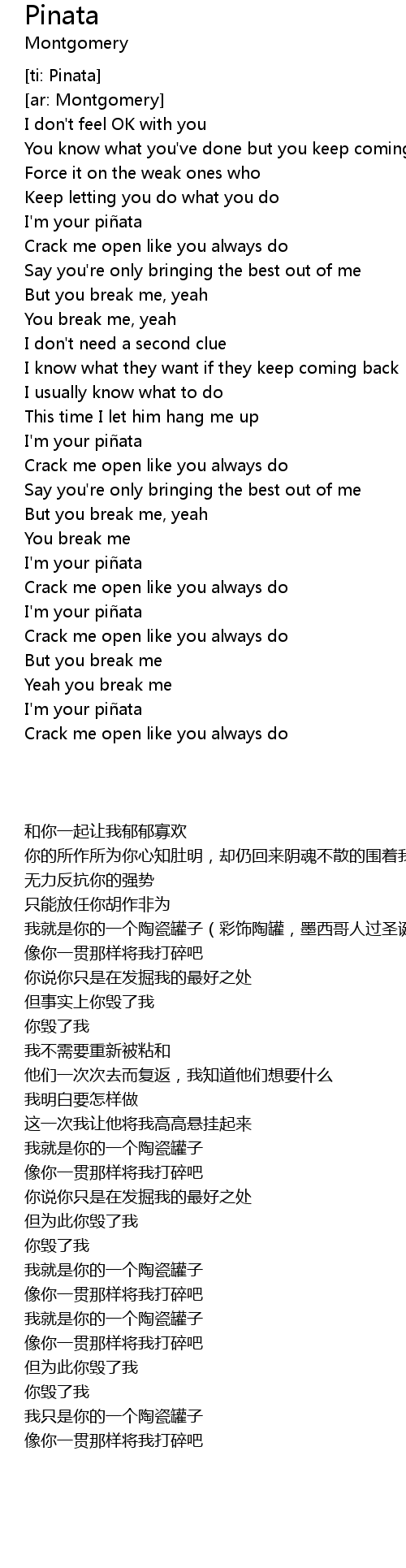 | [00:37.80] | I'm your piñata |