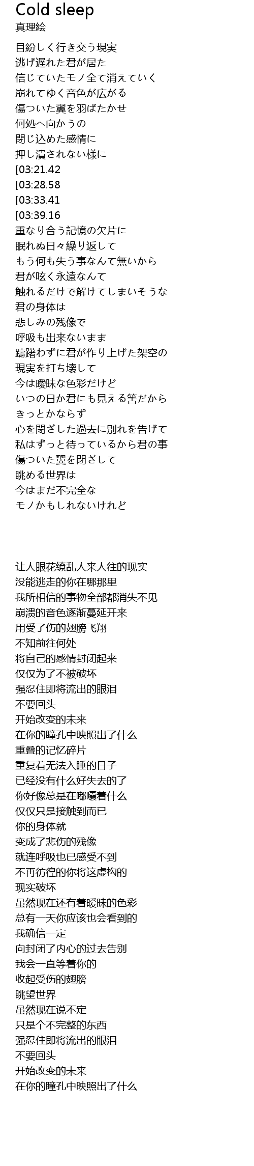 | 歌曲 | Cold sleep |