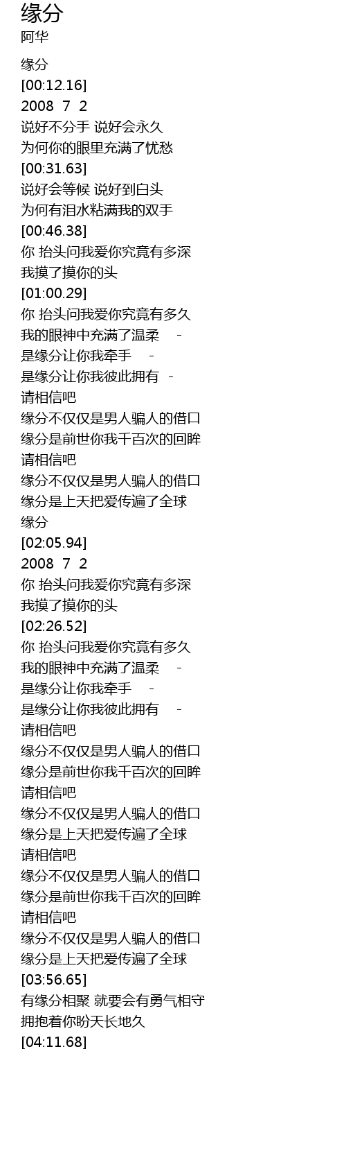 | [01:59.48] | 缘分 |