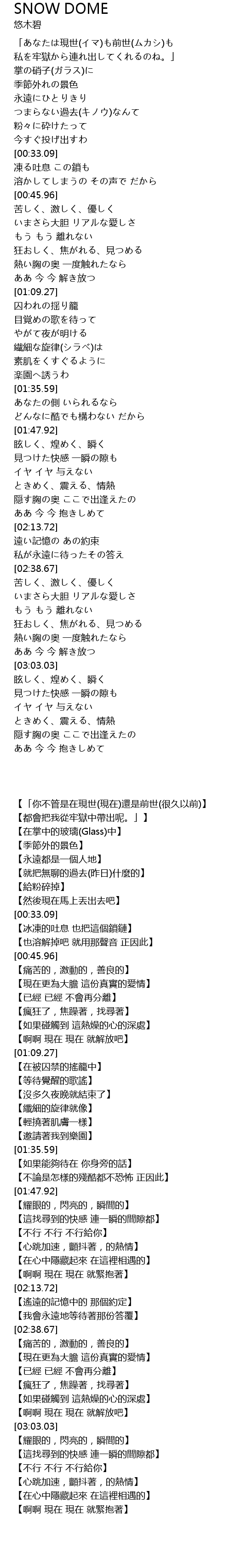 | [03:06.72] | 【耀眼的,閃亮的,瞬間的】 |