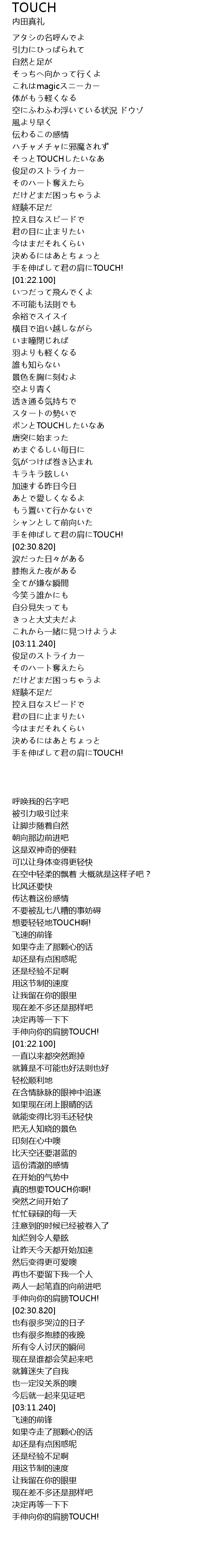 | [03:33.720] | 手伸向你的肩膀TOUCH! |