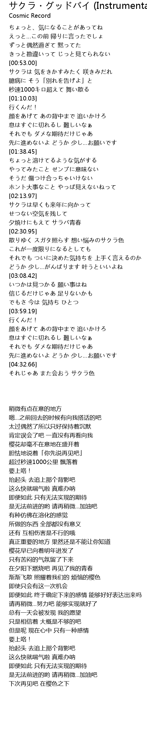 | 歌曲 | サクラ・グッドバイ (Instrumental) |