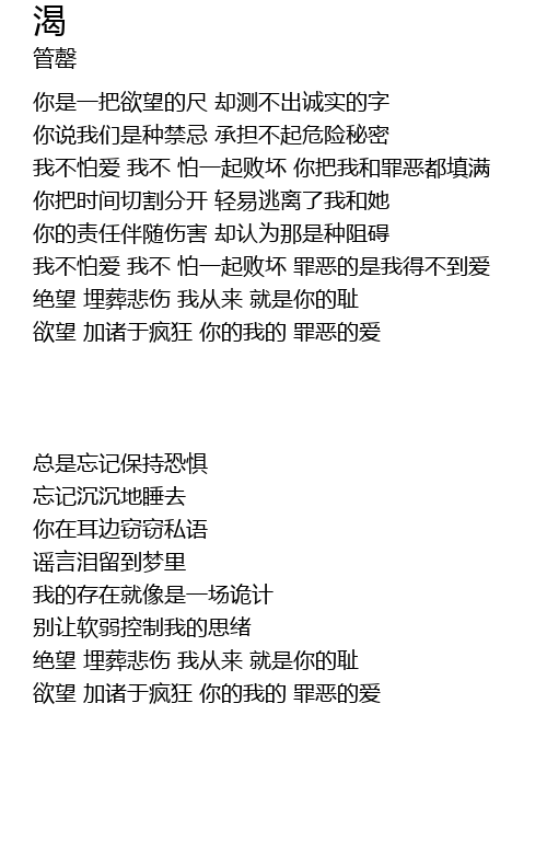 | 欲望 加诸于疯狂 你的我的 罪恶的爱 |