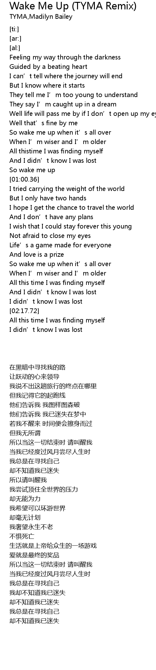 | 歌曲 | Wake Me Up (TYMA Remix) |