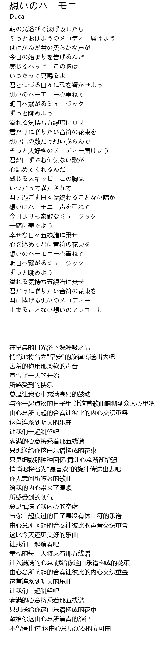 | [00:41.65] | 与你一起点缀的日子里 让这首歌曲响彻到众人心里吧 |