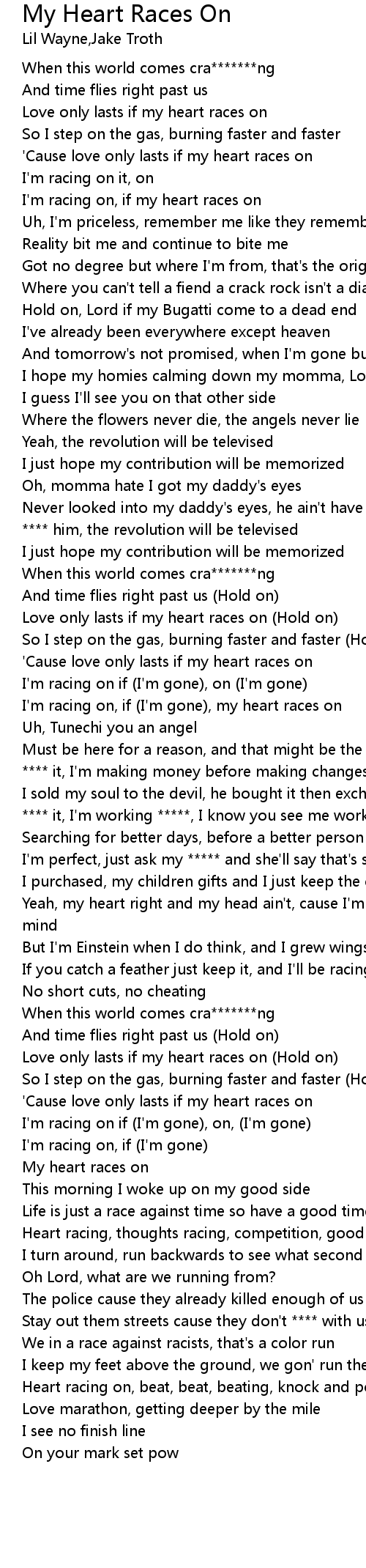 I'm racing on, if my heart races on |