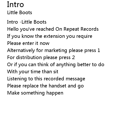 | [00:00.210] | Intro -Little Boots |