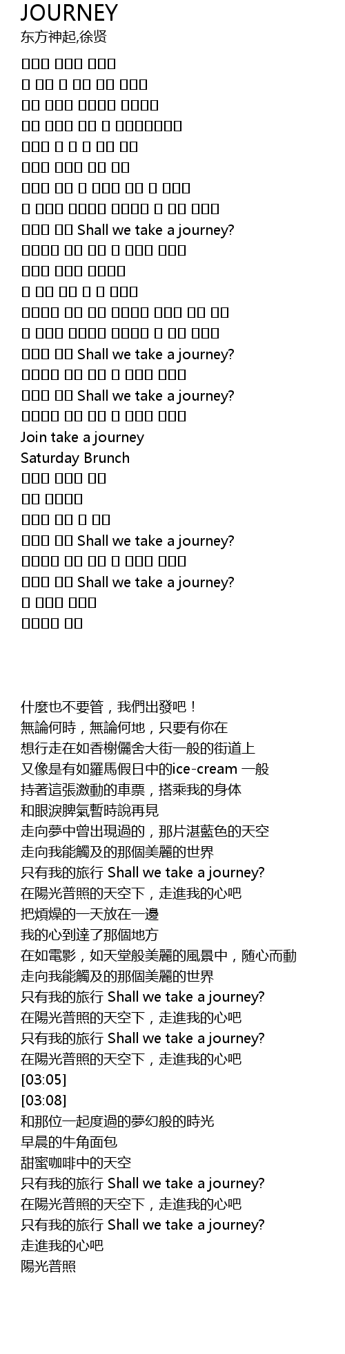 | [03:38] | 只有我的旅行 Shall we take a journey? |