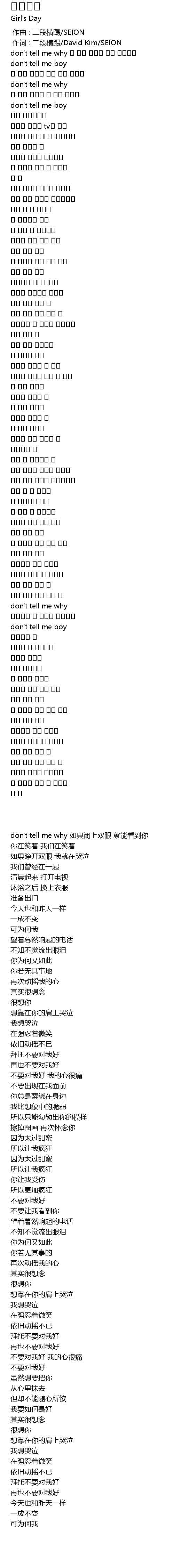 | [00:06.560] | don' t tell me boy |