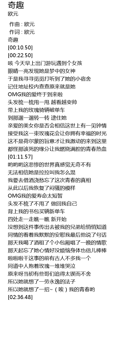 | [00:01.50] | 奇趣 |