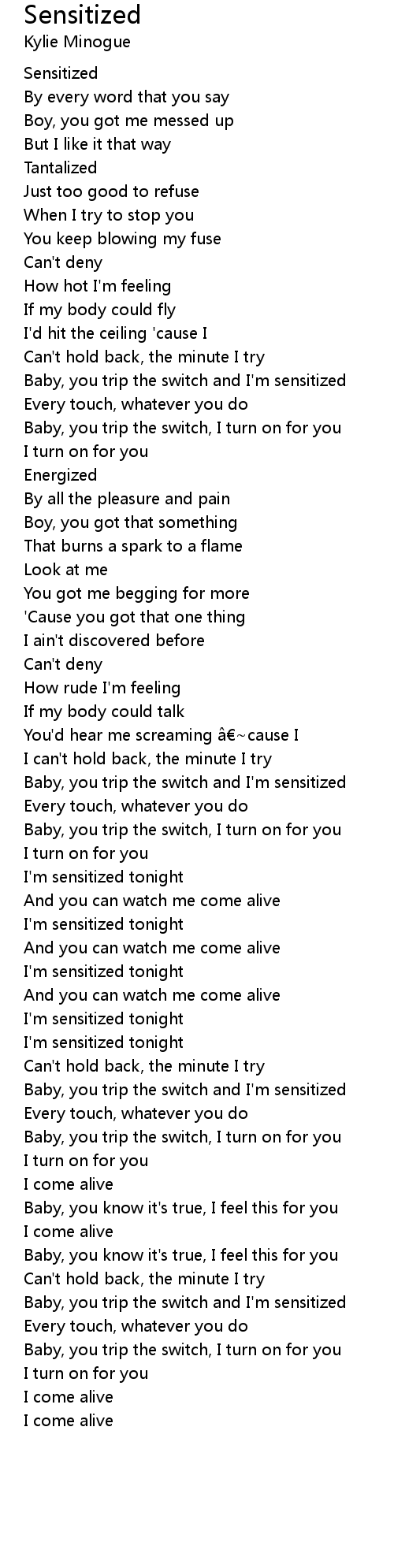 | Baby, you trip the switch and I' m sensitized | |