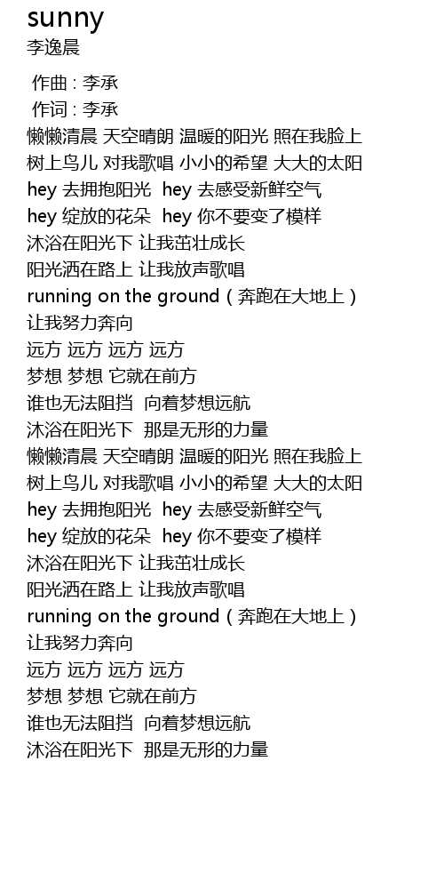 | [01:54.32] | hey 去拥抱阳光 hey 去感受新鲜空气 |