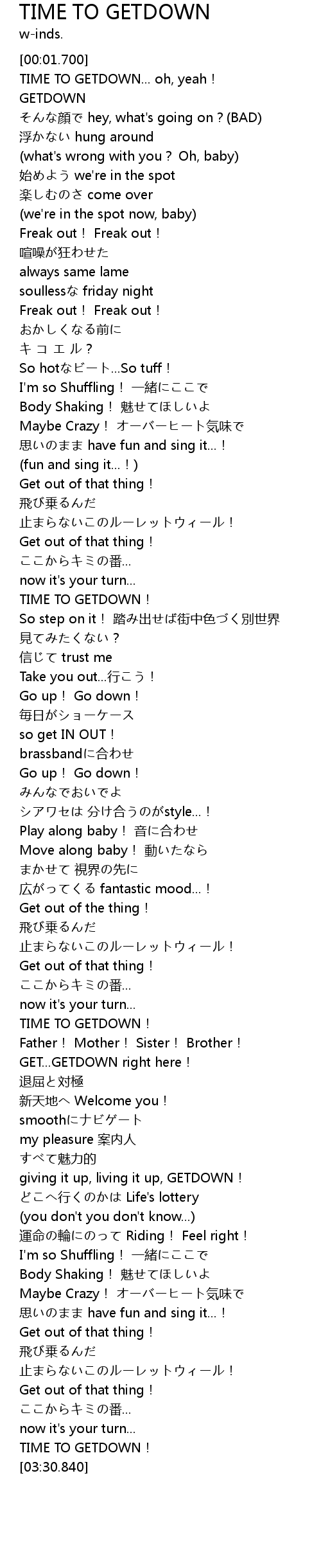 | [03:28.990] | TIME TO GETDOWN! |