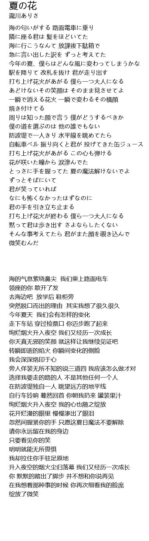 | [01:31.280] | 一瞬で消える花火 一瞬で変わるその横顔 |