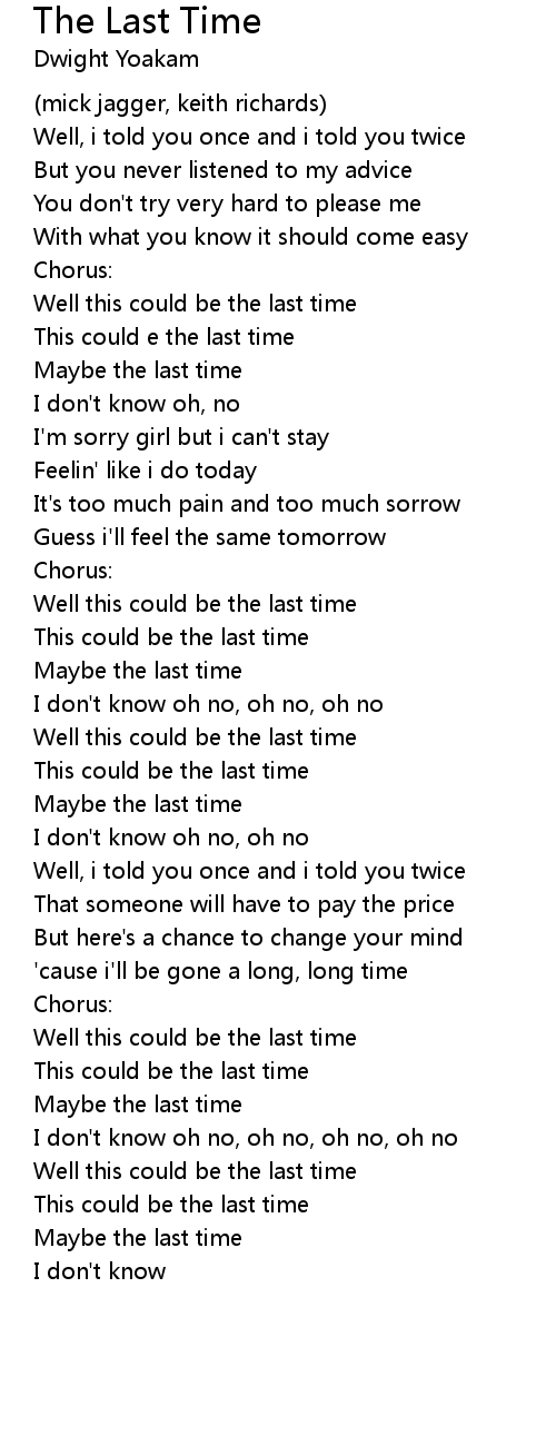 Well this could be the last time |