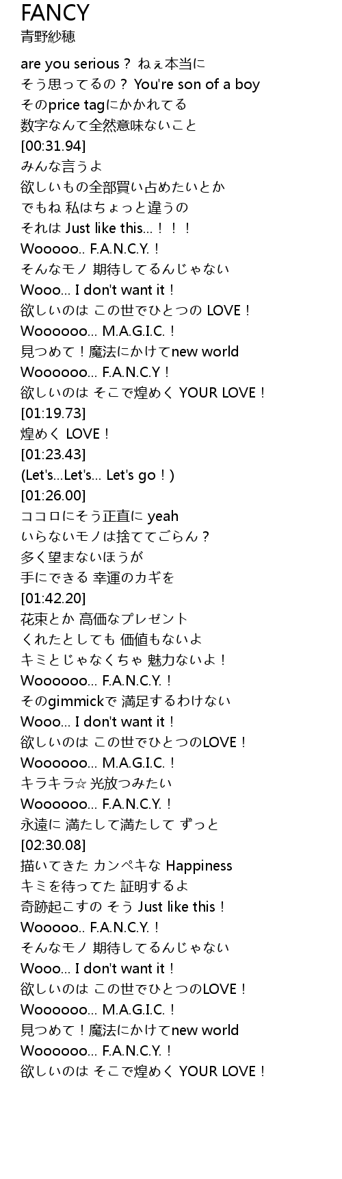 | [02:59.78] | Wooooo.. F.A.N.C.Y.! |