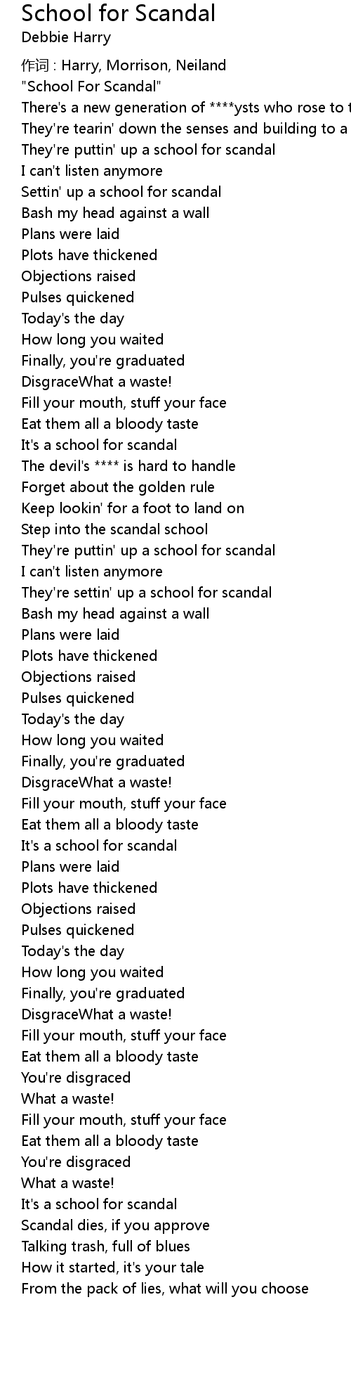 | 歌曲 | School for Scandal |