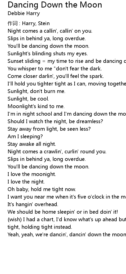 | 歌曲 | Dancing Down the Moon |