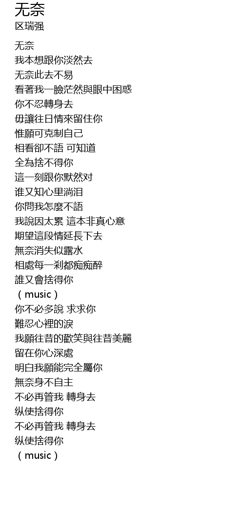 | [00:02.000] | wú nài |